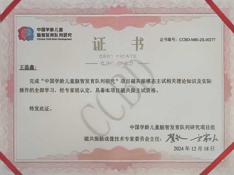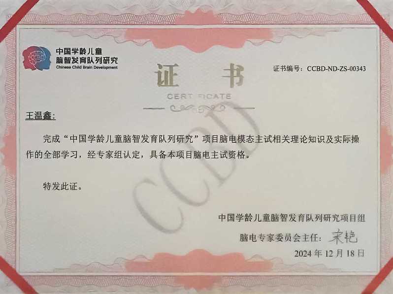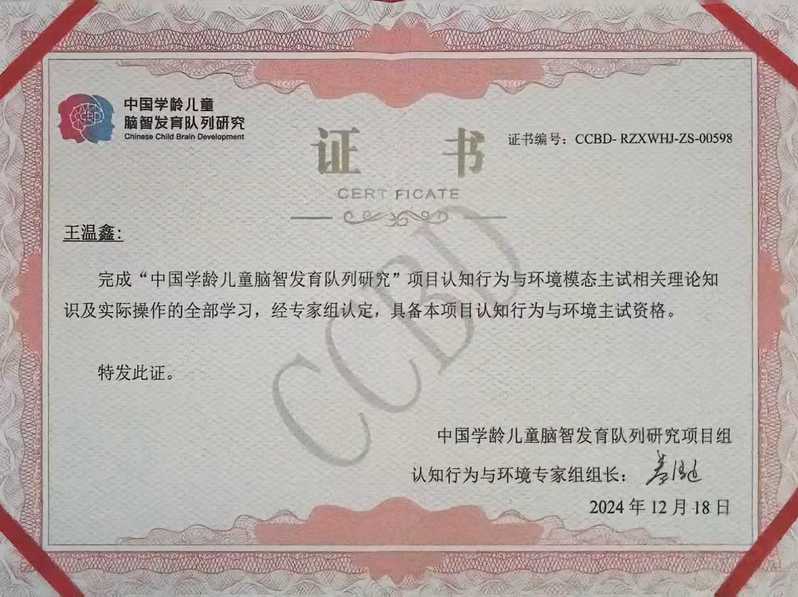 大三暑假,也正因為這份興趣和優(yōu)異的學(xué)習(xí)成績,他成為哈劍橋首批派往北大實習(xí)的兩名學(xué)生之一,在北京大學(xué)心理與認(rèn)知科學(xué)學(xué)院參與“中國學(xué)齡兒童腦智發(fā)育隊列研究”項目,并如愿考取了三個該項目的主試證書。