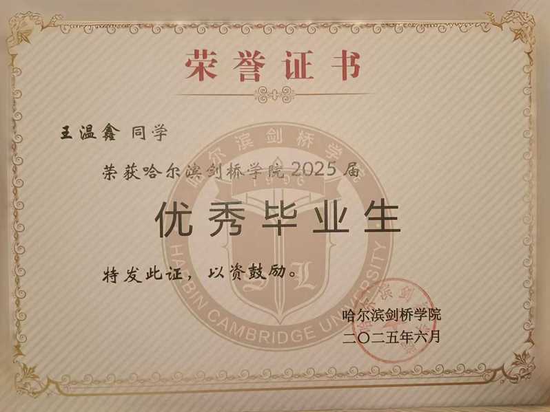 雖然已從哈爾濱劍橋?qū)W院畢業(yè),但王溫鑫的成長之路才剛剛啟程?!芭瓦x擇,其實同等重要?!边@句話貫穿了他的大學(xué)生涯,也將繼續(xù)指引他走向更遠(yuǎn)的未來。