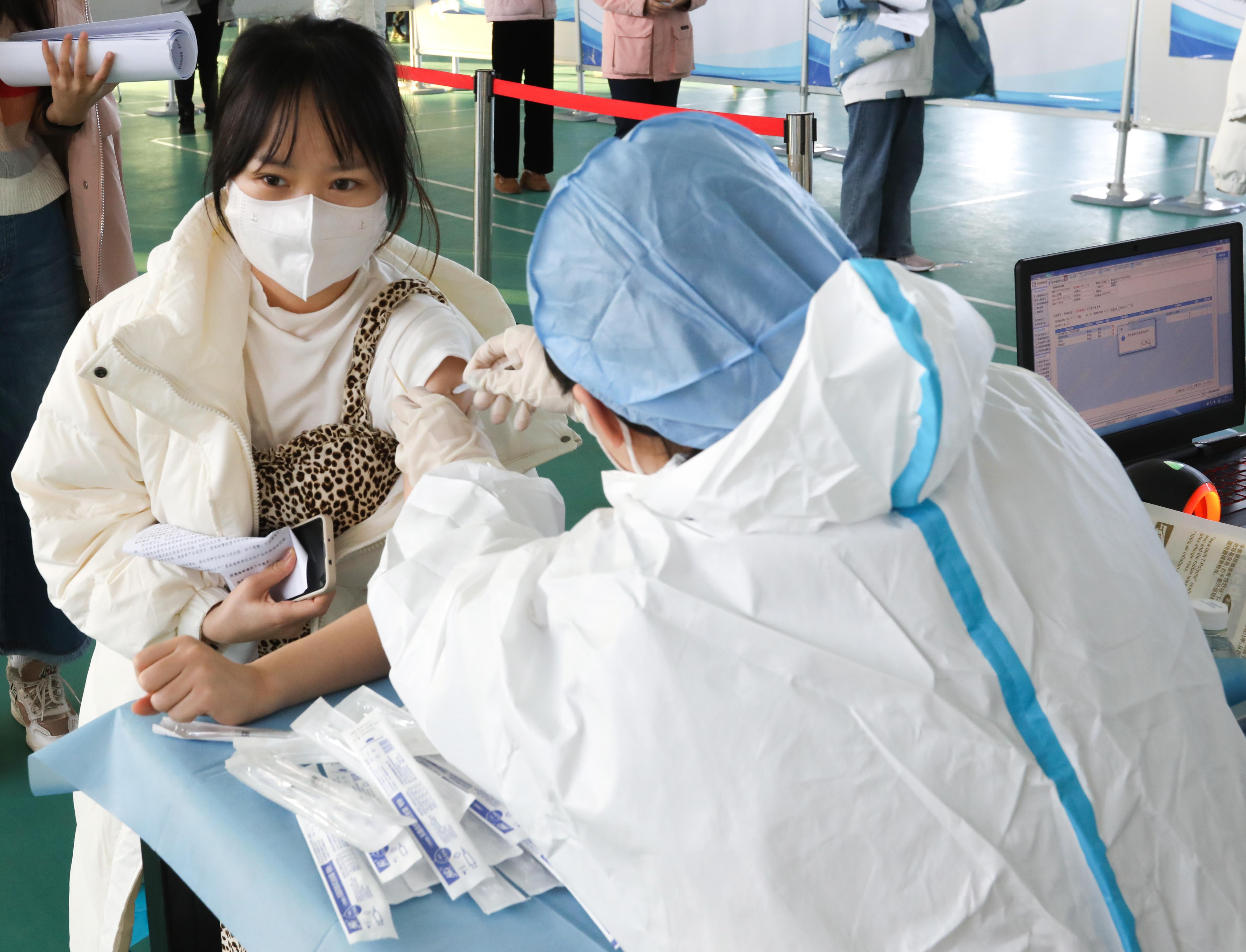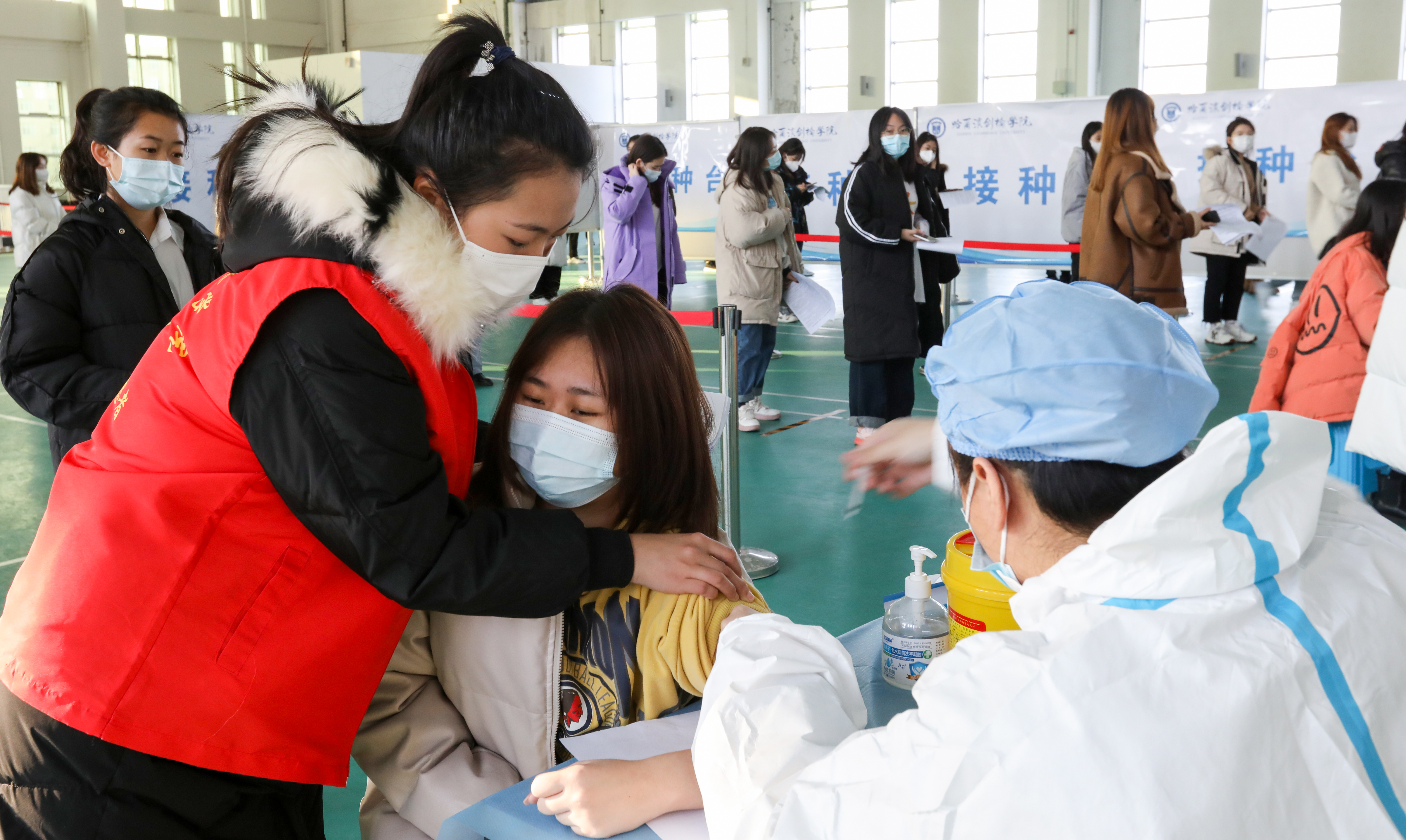 此次接種對象為完成新冠疫苗2劑次接種滿6個月以上的師生,采用同種技術(shù)路線的疫苗進行加強免疫接種。接種現(xiàn)場分為登記區(qū)、取藥處、接種處和留觀區(qū)四個區(qū)域,共設(shè)置了8個接種點,每個功能區(qū)域都安排了志愿者和工作人員,保證了本次疫苗接種工作的安全、規(guī)范、有序。