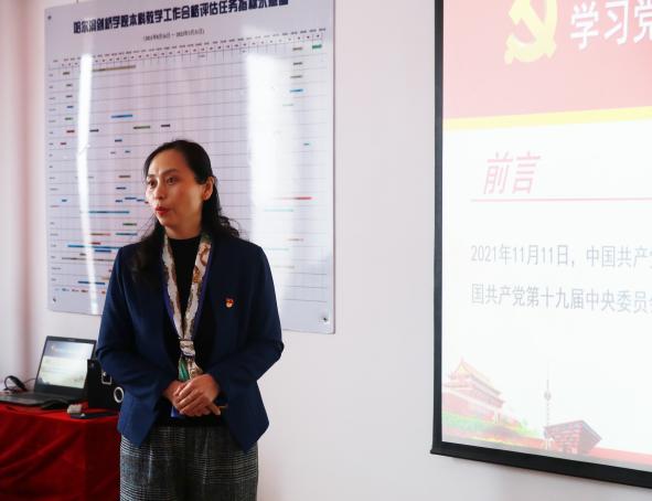 會(huì)上,馬克思主義學(xué)院院長(zhǎng)隋向萍對(duì)《中共中央關(guān)于黨的百年奮斗重大成就和歷史經(jīng)驗(yàn)的決議》進(jìn)行了宣講。她圍繞中國共產(chǎn)黨的百年奮斗歷史,深入剖析了黨的十九屆六中全會(huì)的重要的歷史地位,并從《決議》的“一個(gè)號(hào)召”“兩個(gè)確立”“三次飛躍”“四個(gè)偉大成就”“五大歷史意義”和“十大歷史經(jīng)驗(yàn)”等方面,以生動(dòng)的事例、縝密的邏輯和精辟的語言,帶領(lǐng)大家共同學(xué)習(xí)了全會(huì)精神。