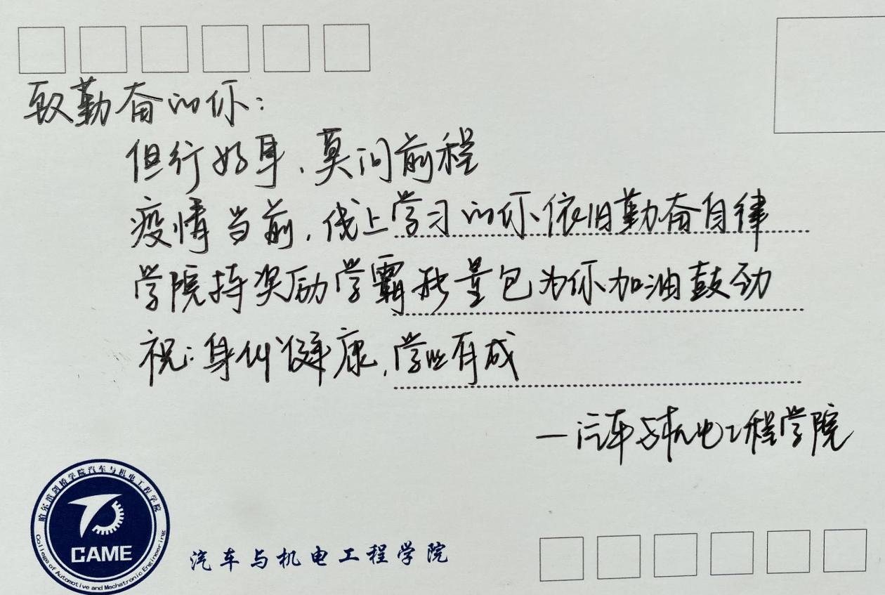 為推進(jìn)學(xué)風(fēng)建設(shè)工作,支持鼓勵學(xué)子在疫情期間努力學(xué)習(xí),4月7日,汽車與機(jī)電工程學(xué)院組織開展“學(xué)霸加油包”送祝?;顒?。各年級輔導(dǎo)員采用隨機(jī)走訪的方式為在寢室自主學(xué)習(xí)的同學(xué)們送去了明信片、水果、牛奶等暖心小禮物,以及真摯的鼓勵與期許。
