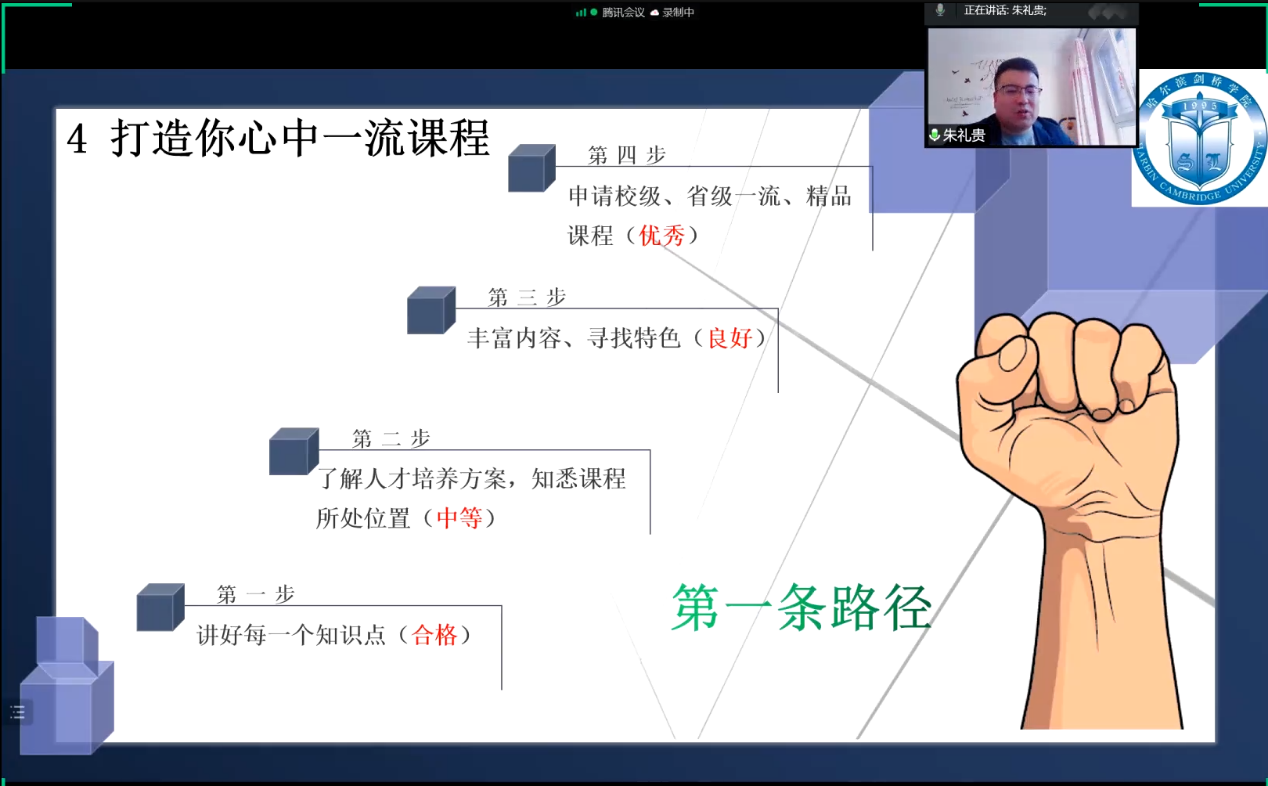 最后,朱禮貴說到青年教師作為我校的新生力量,他們的成長與進(jìn)步?jīng)Q定了學(xué)校未來的水平,每個人向前的一小步,就是劍橋?qū)W院的一大步!希望每一位老師都能教好學(xué)生,成就自己!