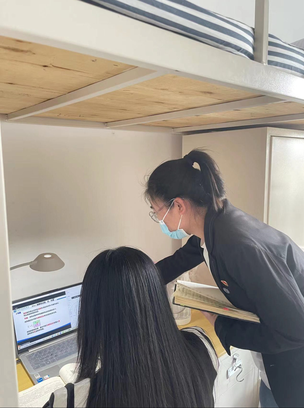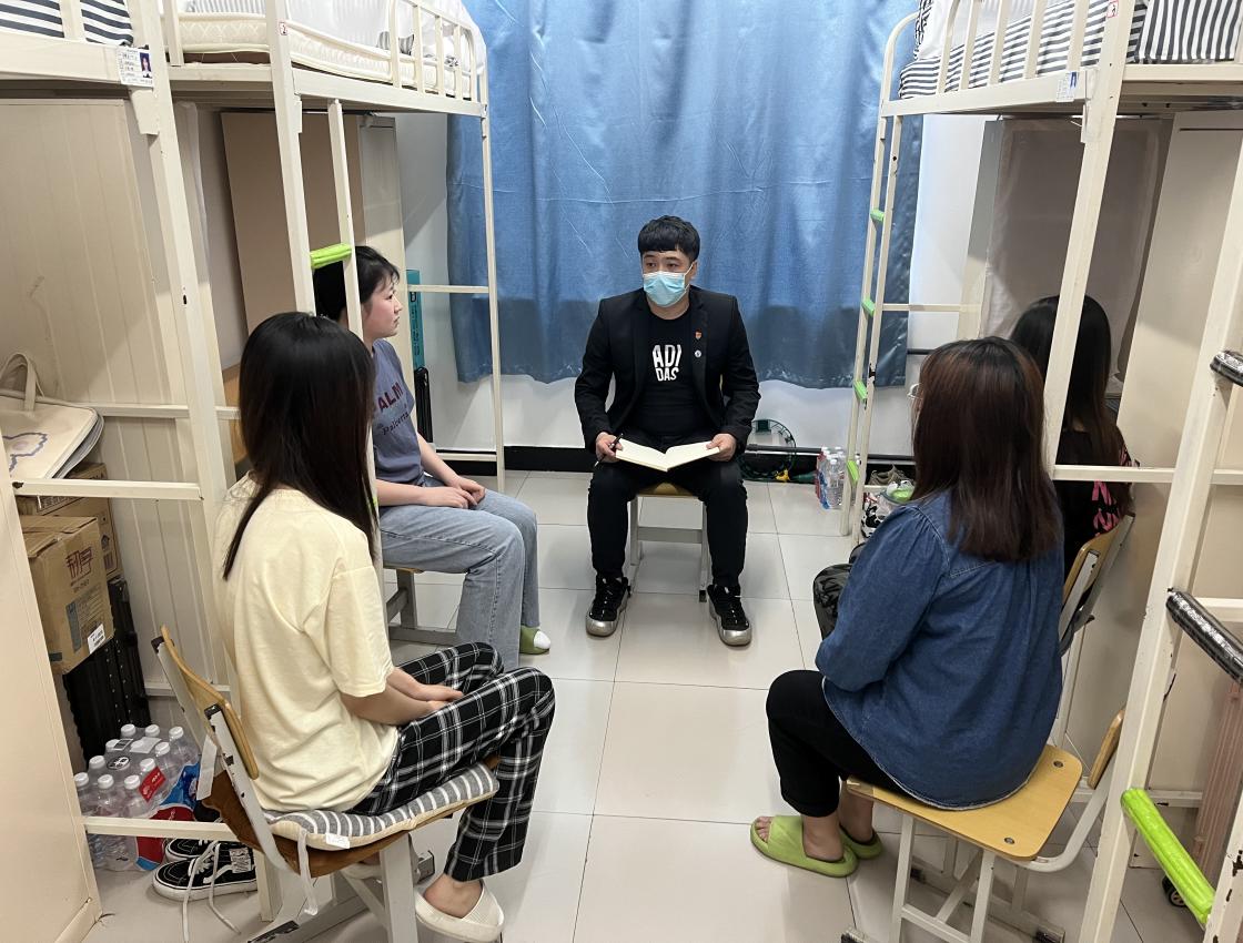 他們是走進(jìn)學(xué)生生活的“身邊人”。疫情期間,外語學(xué)院輔導(dǎo)員們深入宿舍給學(xué)子們送溫暖,他們?cè)啻巫哌M(jìn)學(xué)生宿舍,實(shí)地了解學(xué)生上課情況。提醒同學(xué)們?cè)诜浅r(shí)期要時(shí)刻保持宿舍、個(gè)人衛(wèi)生及開窗通風(fēng),并著重強(qiáng)調(diào)疫情防控期間要注意安全。讓同學(xué)們“停課不停學(xué)”效果有保障,做到疫情防控和學(xué)生學(xué)業(yè)質(zhì)量提升。