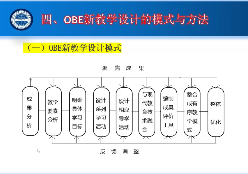 他強(qiáng)調(diào),OBE教育理念對教學(xué)設(shè)計新要求是非常深刻與全面的,主要表現(xiàn)在八個方面,即學(xué)會“逆向設(shè)計”,設(shè)計“成果導(dǎo)向”的教學(xué)系統(tǒng);貫徹“學(xué)生中心”理念,設(shè)計“學(xué)習(xí)導(dǎo)向”助學(xué)系統(tǒng);超越“講聽式教學(xué)模式”,設(shè)計多元互動教學(xué)模式;超越淺層次教學(xué)模式,設(shè)計深層次教學(xué)模式;超越“知識與技能教學(xué)模式”,設(shè)計聚焦學(xué)生終身發(fā)展、事業(yè)成功與生活幸福的“深層助學(xué)模式”;超越傳統(tǒng)的手工教學(xué)模式,設(shè)計充分運(yùn)用現(xiàn)代科學(xué)技術(shù)的現(xiàn)代化教學(xué)模式;養(yǎng)成“持續(xù)改進(jìn)”的習(xí)慣,在持續(xù)改進(jìn)中不斷提升教學(xué)設(shè)計水平,持續(xù)提高教育質(zhì)量與教育效能。