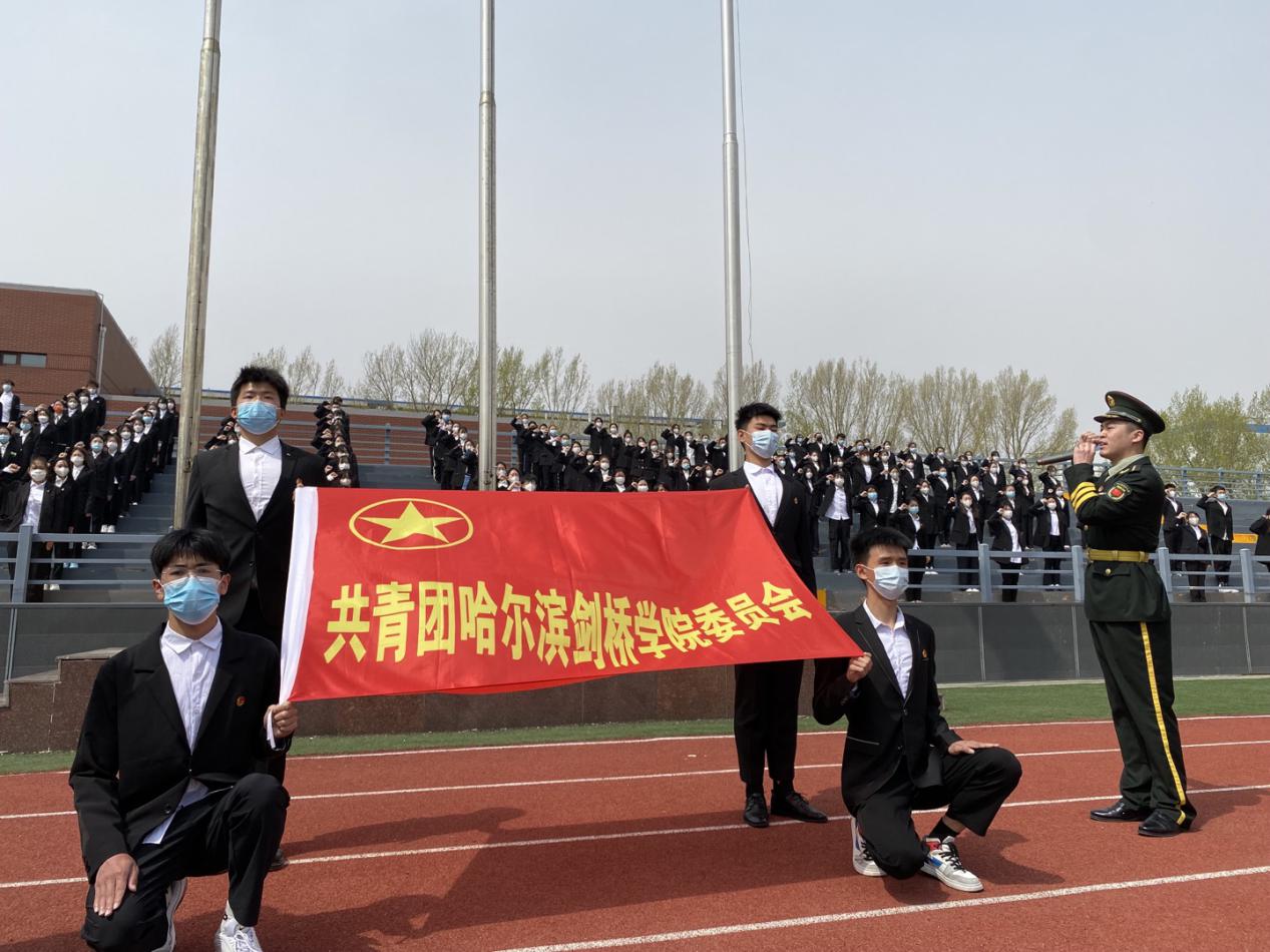 青春心向黨,建功新時(shí)代。為進(jìn)一步學(xué)習(xí)貫徹習(xí)近平總書記在中國人民大學(xué)考察時(shí)的重要講話精神,弘揚(yáng)偉大五四精神,慶祝中國共青團(tuán)成立100周年,5月4日上午10時(shí),哈爾濱劍橋?qū)W院在體育場舉行紀(jì)念五四運(yùn)動(dòng)103周年主題升旗儀式。按照疫情防控工作要求,學(xué)校領(lǐng)導(dǎo)、各學(xué)院黨總支書記、全體學(xué)工人員、在校生代表線下參加升旗儀式,全校9000余名師生相聚“云端”,線上參加升旗儀式,共同慶祝“五四”青年節(jié)。