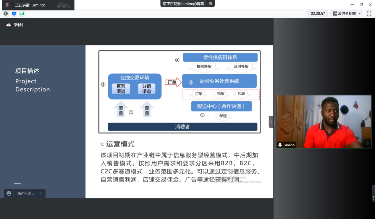 大賽還邀請吸納了國際文化教育學院參加,鼓勵非洲留學生積極參與創(chuàng)新創(chuàng)業(yè)活動,共同交流中非文化,弘揚絲路精神,踐行一帶一路。后期還將重點幫助非洲留學生在創(chuàng)新思維、創(chuàng)新方法、創(chuàng)新路徑、創(chuàng)新能力以及創(chuàng)新方向等方面給予特殊指導,協(xié)同國際學院的老師們共同打造我校創(chuàng)新創(chuàng)業(yè)新方式。