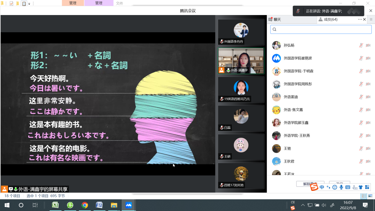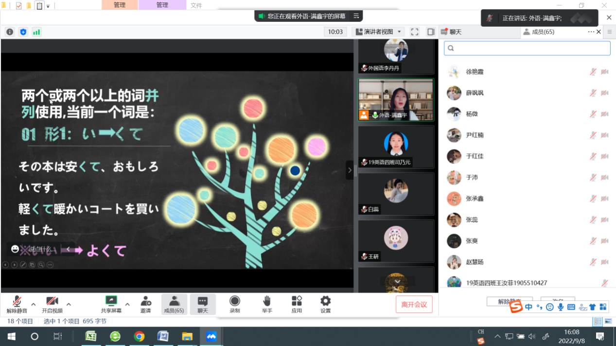9月8日下午,我校外國(guó)語(yǔ)學(xué)院組織教師參加線上教學(xué)觀摩活動(dòng),學(xué)院英語(yǔ)、商務(wù)英語(yǔ)、漢語(yǔ)國(guó)際教育、日語(yǔ)、朝鮮語(yǔ)、公共外語(yǔ)專業(yè)的全體教師相聚云端,共同參加了來(lái)自黑龍江中醫(yī)藥大學(xué)滿鑫宇老師主講的英語(yǔ)專業(yè)《第二外語(yǔ)》課程觀摩活動(dòng)。