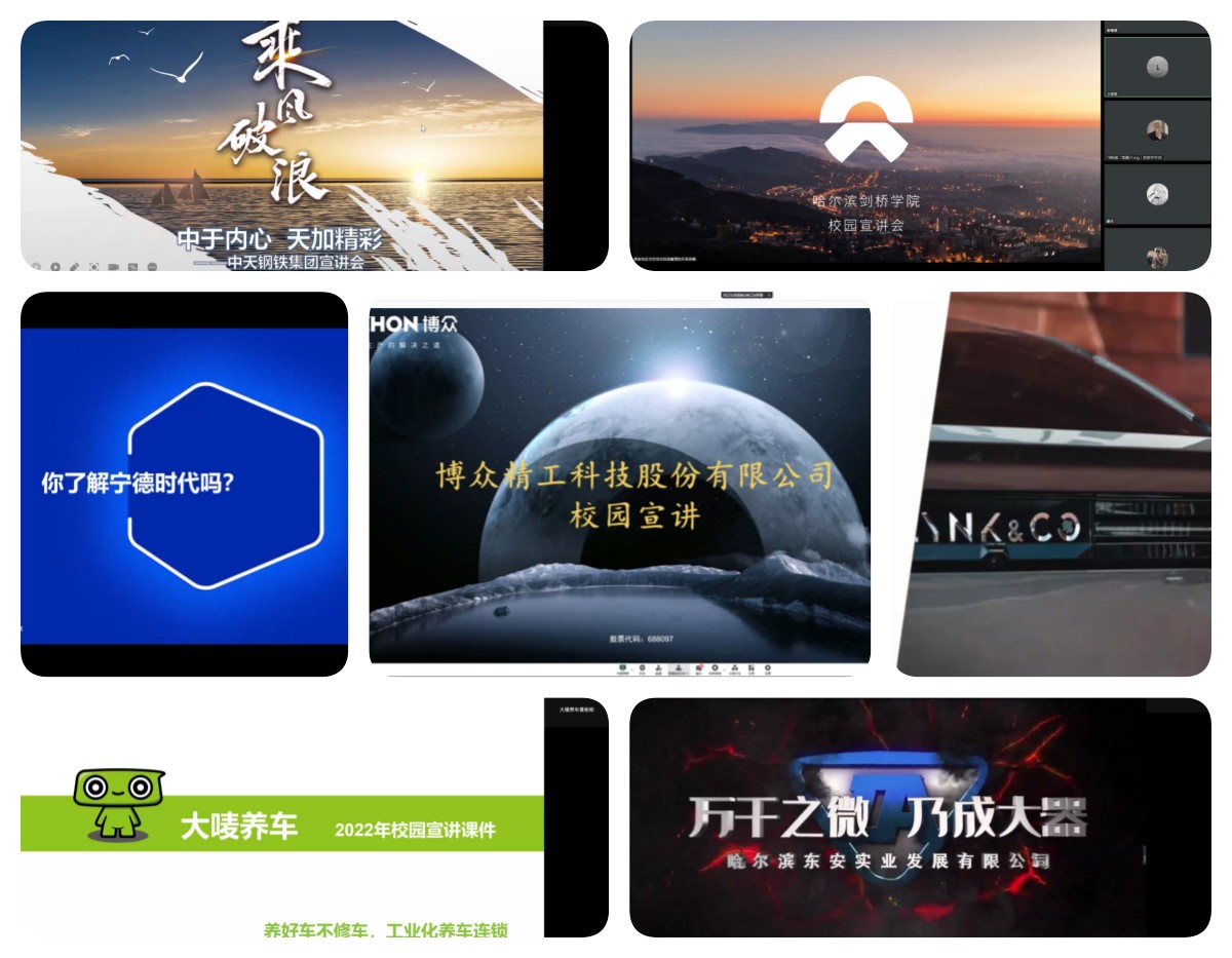 在兩周內(nèi),學(xué)院共安排哈爾濱東安實(shí)業(yè)發(fā)展有限公司、博眾精工科技股份有限公司、杭州吉利汽車、蔚來(lái)汽車、丘鈦電子、中天鋼鐵集團(tuán)、運(yùn)通奧迪4S店、聯(lián)迪比亞迪4S店、鍵嘉機(jī)器人、雷克薩斯4S店等共17家合作基地開(kāi)展宣講活動(dòng)。企業(yè)覆蓋哈爾濱本地及江、浙、滬等經(jīng)濟(jì)發(fā)達(dá)地區(qū),提供智能制造、軍工制造、整車制造、汽車銷售服務(wù)等多元化崗位選擇。