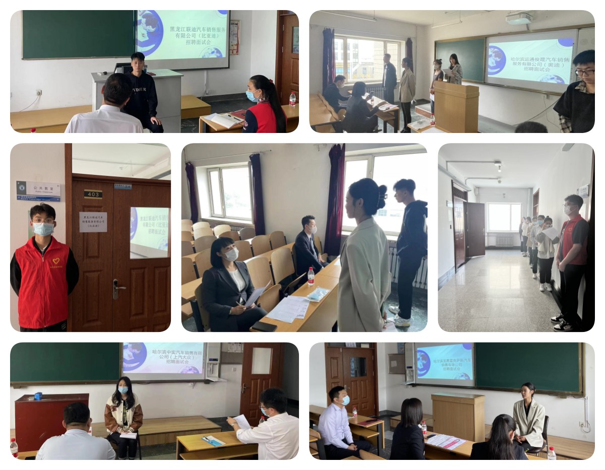 在線上專場(chǎng)宣講會(huì)和線上初選面試后,學(xué)院邀請(qǐng)哈爾濱運(yùn)通汽車銷售服務(wù)有限公司、黑龍江聯(lián)迪汽車銷售服務(wù)有限公司(比亞迪)、哈爾濱中實(shí)汽車銷售有限公司(上汽大眾六星經(jīng)銷商)、哈爾濱龍晟雷克薩斯汽車銷售有限公司面試團(tuán)隊(duì)進(jìn)入我校,與學(xué)生進(jìn)行現(xiàn)場(chǎng)面試。學(xué)生參與度極高,積極準(zhǔn)備自己的簡(jiǎn)歷,著裝正式,在學(xué)生志愿者團(tuán)隊(duì)的服務(wù)下,順利地完成線下面試活動(dòng)。學(xué)生們非常珍惜面試機(jī)會(huì),都在盡最大努力展現(xiàn)自己最優(yōu)秀的一面。