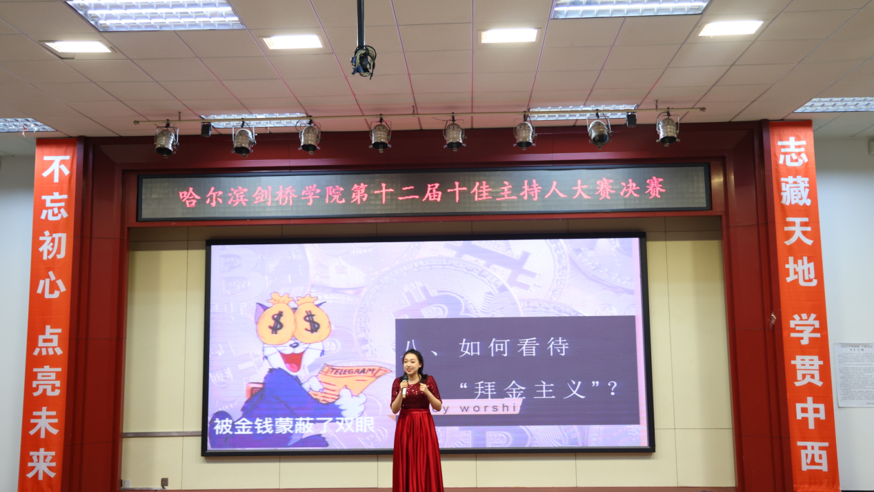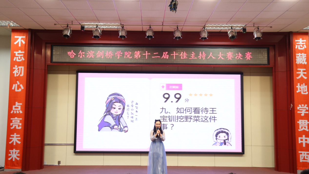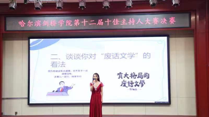聚青年之火,燃時(shí)代之光。11月26日晚,由校有線廣播臺(tái)主辦的哈爾濱劍橋?qū)W院第十二屆十佳主持人總決賽在正德樓多功能廳圓滿落幕。校團(tuán)委書記王莉,二級(jí)學(xué)院團(tuán)總支書記劉洋、逄國(guó)明、劉雅萌、姜再中、賈金秋,輔導(dǎo)員李科、李天洋、寧佳歡、關(guān)靜雯等10位教師出席活動(dòng)并擔(dān)任評(píng)委,3256人線上觀看直播。
