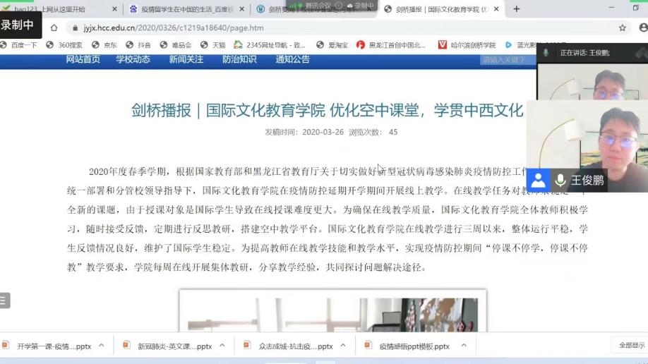 2月7日,由教育部中外語言交流合作中心主辦,哈爾濱劍橋?qū)W院國際文化教育學(xué)院承辦的“人文華夏·云游北國”線上團組的線上直播課圓滿結(jié)課,結(jié)營儀式成功舉辦。