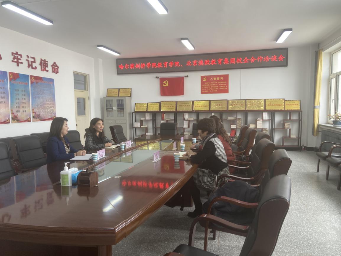 北京澳歐教育集團(tuán)校企合作部主任劉波與黑龍江省區(qū)域負(fù)責(zé)人孫靜華園長(zhǎng)表達(dá)了希望與教育學(xué)院建立長(zhǎng)期穩(wěn)定校企合作關(guān)系的意愿,深入產(chǎn)教融合,協(xié)助學(xué)院提升在校生崗位實(shí)踐能力。區(qū)域教學(xué)園長(zhǎng)董盈迎詳細(xì)介紹了集團(tuán)發(fā)展、運(yùn)營(yíng)模式、培養(yǎng)培訓(xùn)體系及校企合作方向和課程。