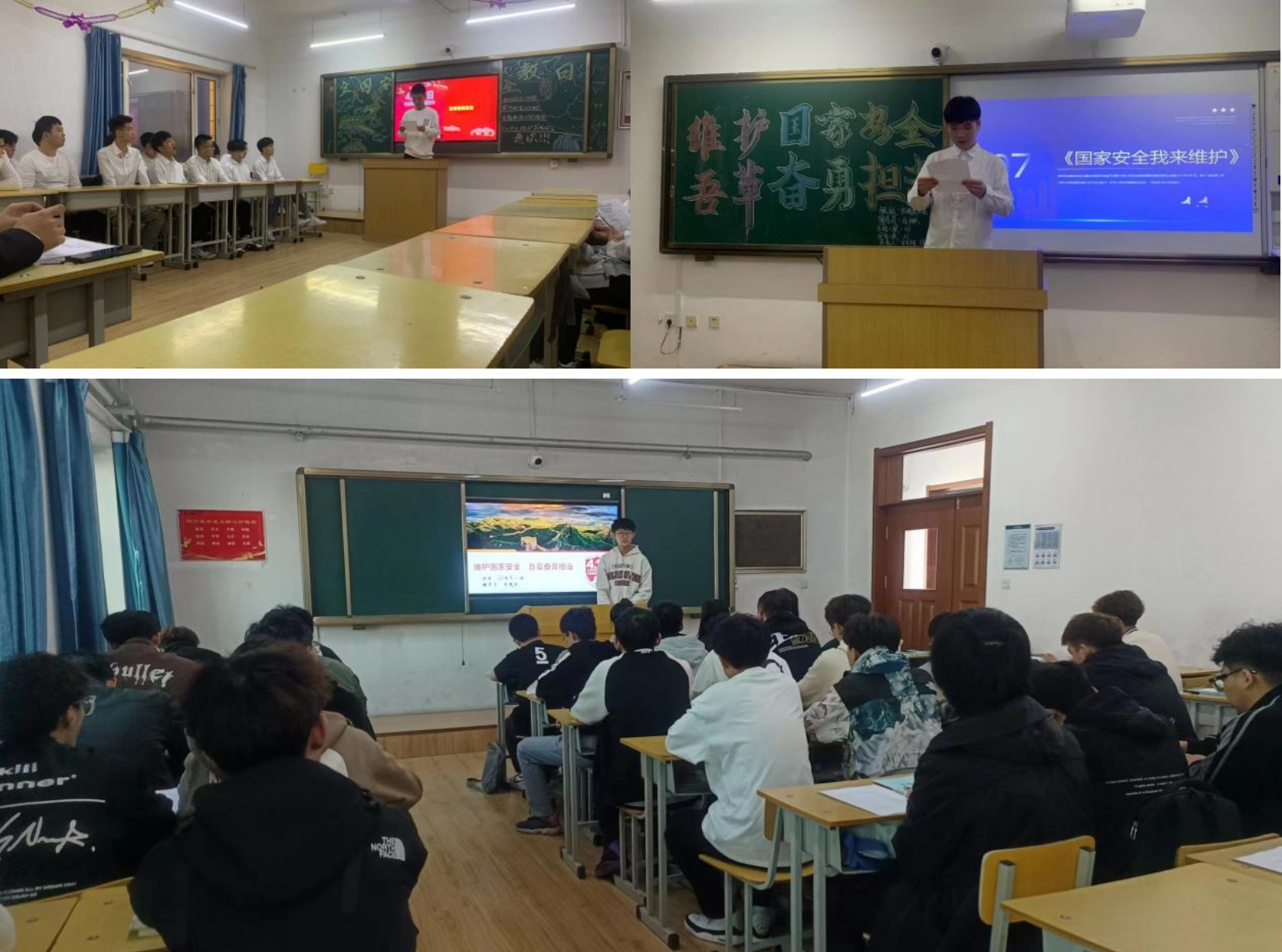 全校各班級開展“國家安全,人人有責(zé)”主題團(tuán)日活動,輔導(dǎo)員和學(xué)生干部從國家安全知識講解方面著手,共同學(xué)習(xí)國家安全的基本內(nèi)涵、基本原則、重要意義,了解了相關(guān)法律法規(guī)。同學(xué)們圍繞“公民維護(hù)國家安全的權(quán)利”“提高警惕發(fā)現(xiàn)危害國家安全的活動”等方面交流學(xué)習(xí)體會。觀看相關(guān)時政新聞視頻,讓每位同學(xué)認(rèn)識到要嚴(yán)格遵守國家法律,共同守衛(wèi)國家安全,樹立安全意識,掌握安全知識。