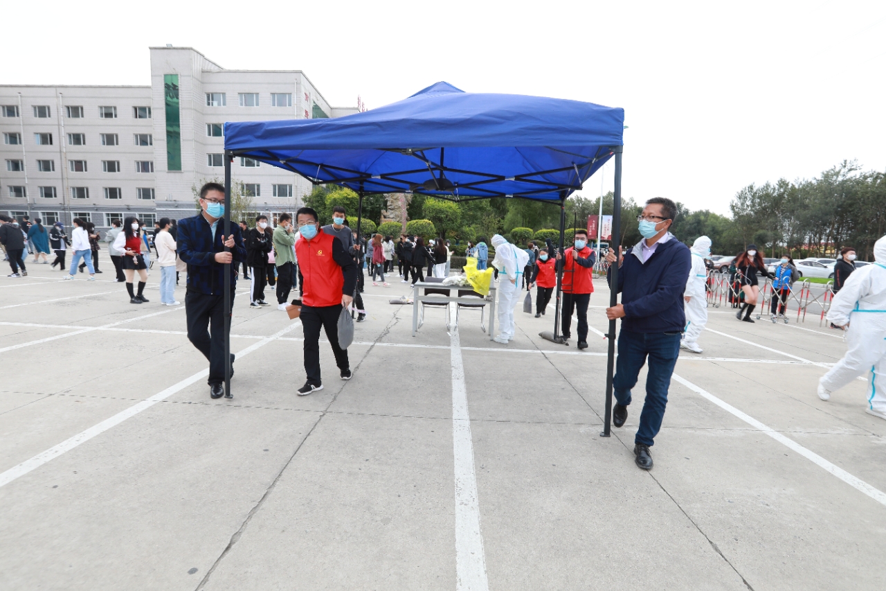 我校黨委書記袁偉帶領黨員志愿服務先鋒隊布置核酸檢測現(xiàn)場