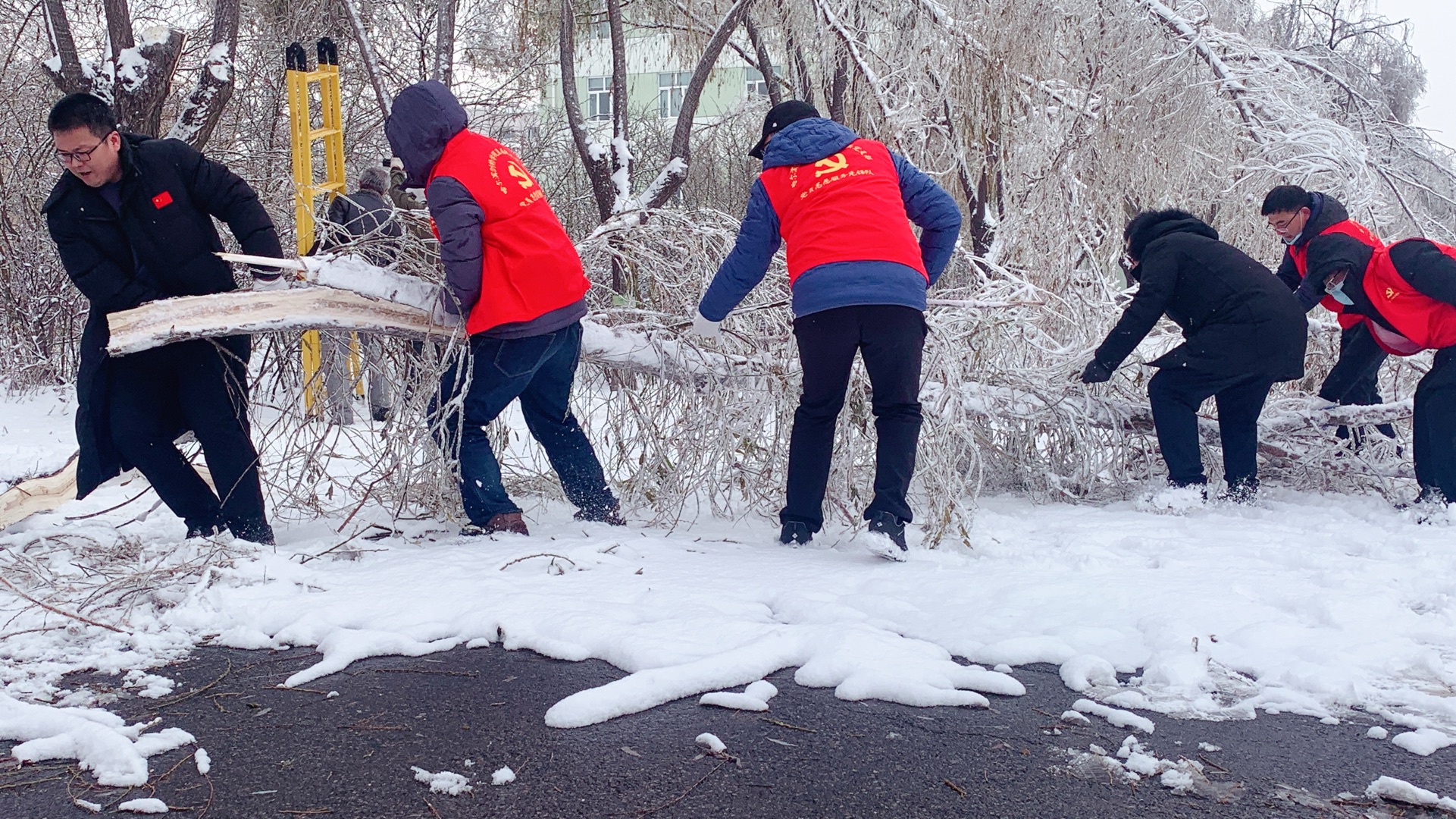 我校工會主席洪文龍帶領黨員志愿者參加抗雪災志愿服務活動