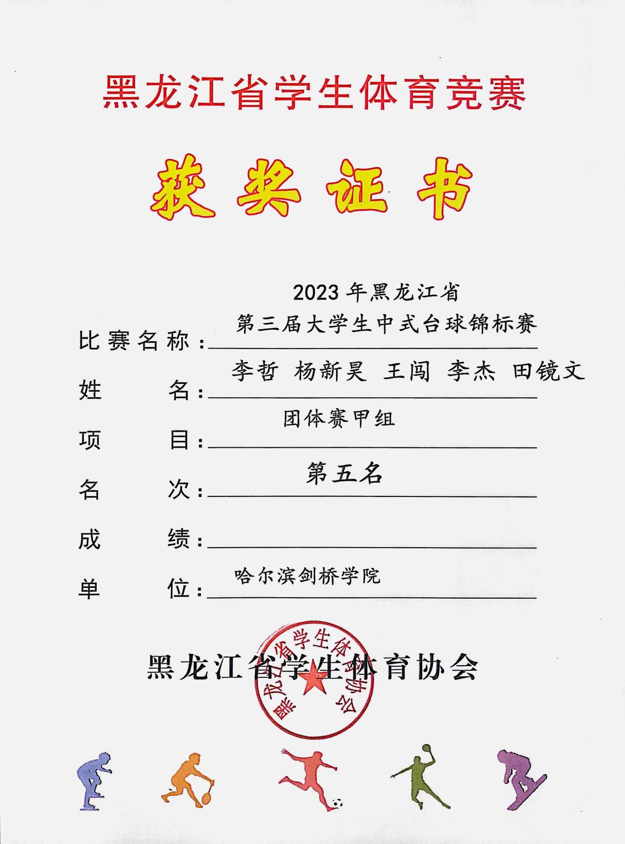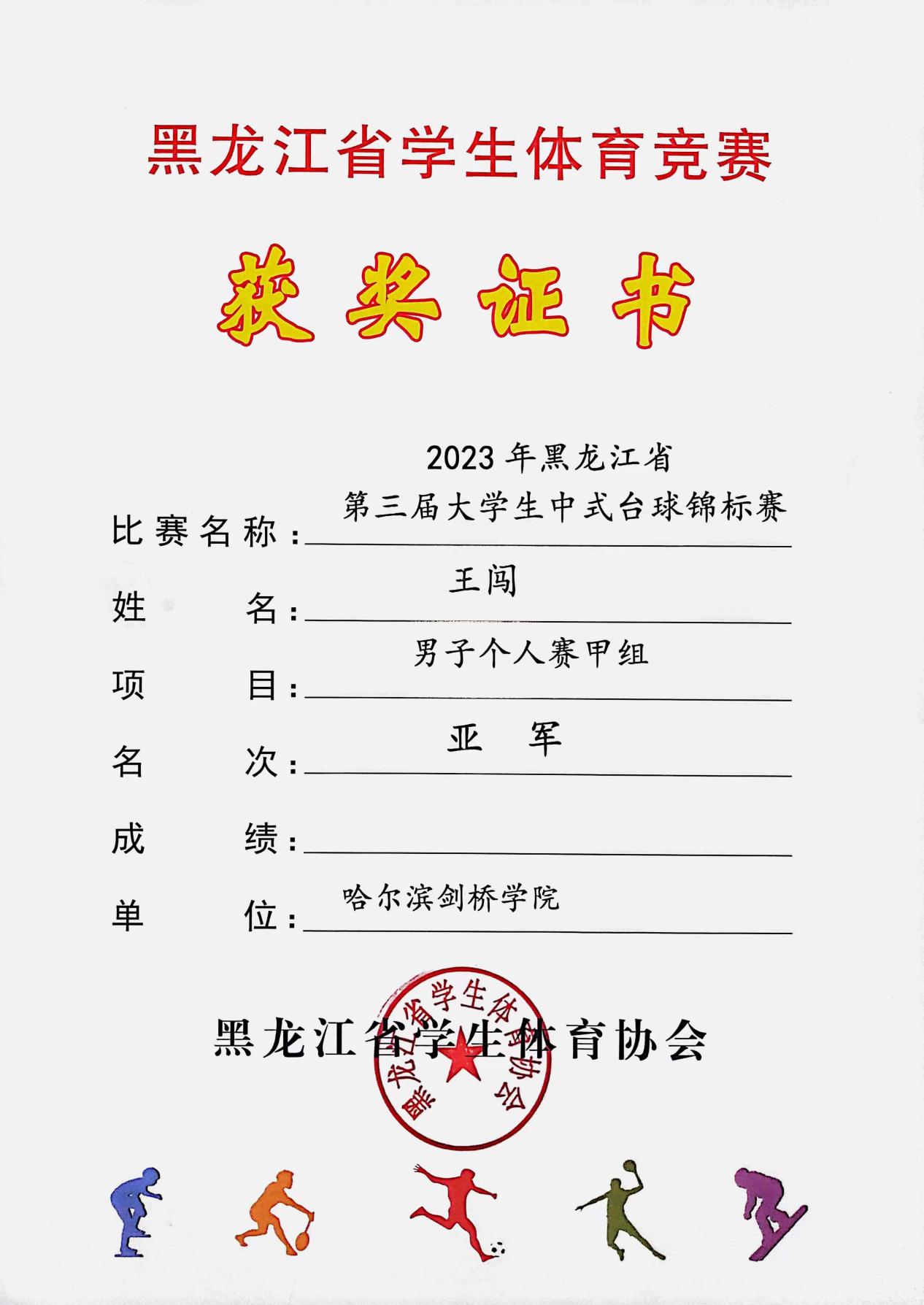 近日,由黑龍江省學(xué)生體育協(xié)會(huì)主辦、省臺(tái)球協(xié)會(huì)承辦的黑龍江省第三屆大學(xué)生中式臺(tái)球錦標(biāo)賽在哈落幕。在學(xué)校的大力支持下,經(jīng)過體育教學(xué)部王勇主任和李興凱老師的悉心指導(dǎo),我校2021級(jí)機(jī)械二班學(xué)生王闖榮獲個(gè)人賽亞軍,同時(shí),我校還獲得了團(tuán)體賽第五名和體育道德風(fēng)尚獎(jiǎng)。