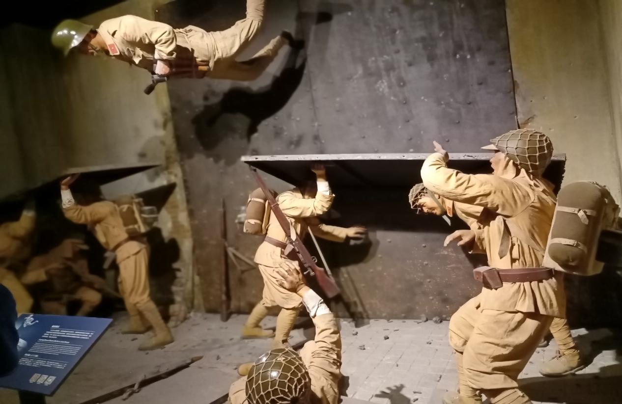 6月22日,大家來到了上海淞滬會戰(zhàn)的重要遺址——電影里《八佰》的四行倉庫,懷著崇敬的心情參觀了 “血廒淞滬”“堅守四行”“孤軍抗?fàn)帯薄安恍嘭S碑”四個主題展館。紀(jì)念館采用多種手段再現(xiàn)1937年八一三淞滬抗戰(zhàn)后期,國民革命400余官兵,在孤立無援的情況下,堅守四行倉庫的英雄事跡。四行倉庫館內(nèi)陳列著大量的歷史文獻(xiàn)資料以及按照比例還原的雕塑,有奮不顧身的戰(zhàn)士,也有窺窗翻入的侵略者,生動地展示出每一個場景,老師們身臨其境仿佛置身于戰(zhàn)場,內(nèi)心翻涌起了保家衛(wèi)國的一腔熱血。