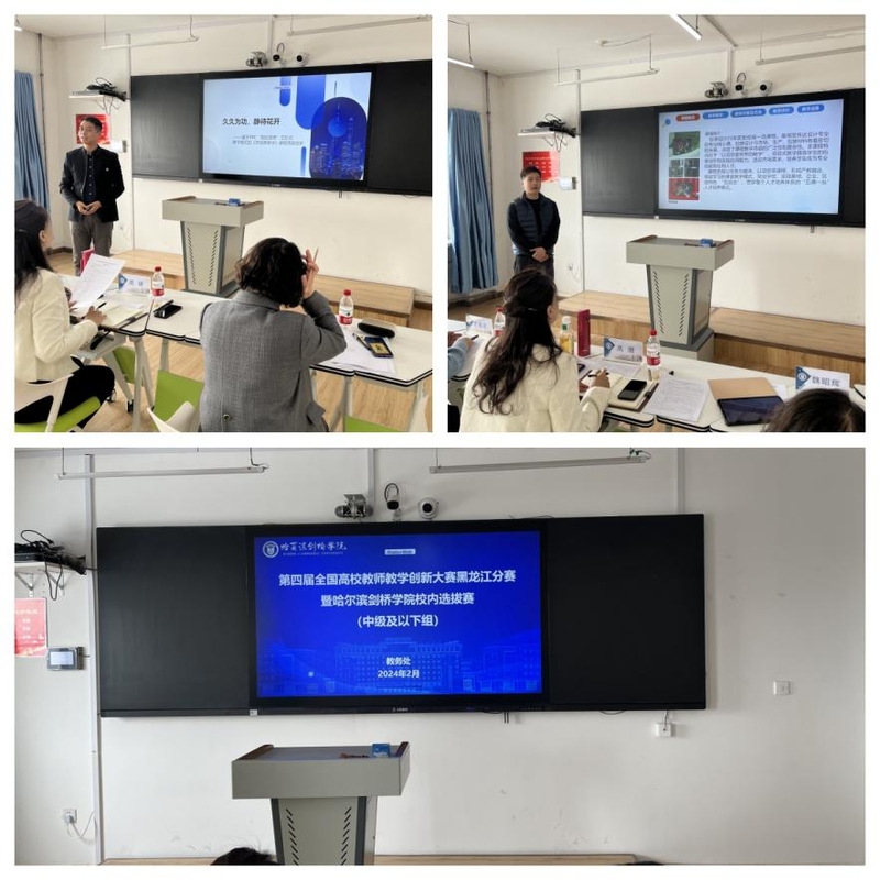 2月27日,學(xué)校舉辦第四屆全國(guó)高校教師教學(xué)創(chuàng)新大賽黑龍江賽區(qū)暨哈爾濱劍橋?qū)W院校內(nèi)選拔賽。本次大賽按照“四新”建設(shè)、基礎(chǔ)課程、課程思政、產(chǎn)教融合等領(lǐng)域分成新文科組、新工科組、基礎(chǔ)課程組、課程思政組、產(chǎn)教融合組,每個(gè)組別按照教師專業(yè)技術(shù)職務(wù)等級(jí)分為正高、副高、中級(jí)及以下,共計(jì)15個(gè)小組。全校共有9個(gè)教學(xué)單位的66門課程參加院賽,學(xué)校組織評(píng)審專家對(duì)教師的申報(bào)材料進(jìn)行網(wǎng)絡(luò)評(píng)審,最終推選出28門課程參加校賽。