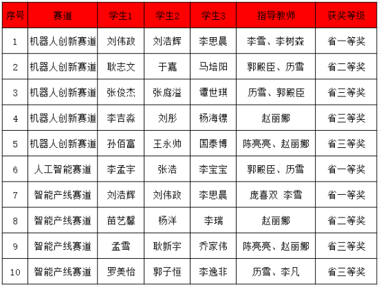 我校汽車(chē)與機(jī)電工程學(xué)院共組織10支隊(duì)伍參加大賽機(jī)器人創(chuàng)新賽道、人工智能賽道,智能產(chǎn)線(xiàn)賽道,并取得省一等獎(jiǎng)3項(xiàng)(晉級(jí)國(guó)賽)、省二等獎(jiǎng)2項(xiàng)(晉級(jí)國(guó)賽)、省三等獎(jiǎng)5項(xiàng)的優(yōu)異成績(jī)。