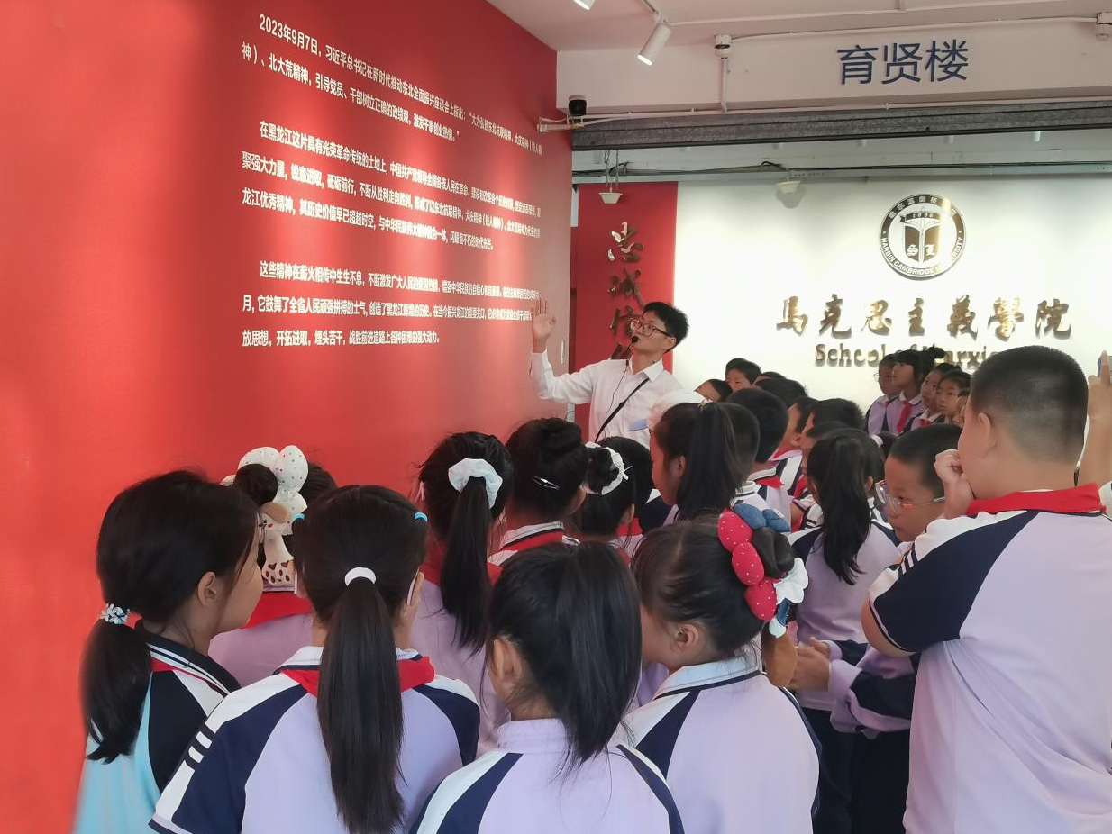 9月26日,馬克思主義學(xué)院與大中小學(xué)思政課一體化研究中心邀請(qǐng)哈爾濱劍橋?qū)W院附屬小學(xué)三年級(jí)學(xué)生走進(jìn)龍江優(yōu)秀精神文化長廊。在學(xué)院青年教師的講解下,泛黃的老照片、凝練的文字介紹將龍江紅色歷史徐徐鋪展。面對(duì)孩子們現(xiàn)場(chǎng)真摯的提問,教師以“英雄心中裝著祖國和人民”的通俗解讀,幫助少年讀懂信仰的重量。同日,“靜雯”志愿者服務(wù)站組織志愿者赴烈士陵園開展緬懷活動(dòng),志愿者們?cè)诩o(jì)念碑前鞠躬致敬,在烈士事跡陳列館中聆聽革命故事,于莊嚴(yán)肅穆中接受精神洗禮,讓“不怕犧牲、艱苦奮斗”的革命精神深深扎根。