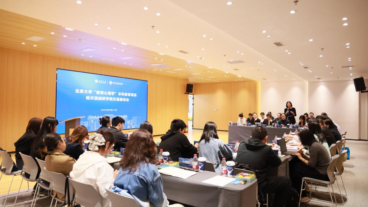當(dāng)日上午,北大師生與哈爾濱劍橋?qū)W院校領(lǐng)導(dǎo)、教育學(xué)院師生代表舉行“教育心理學(xué)”本科項(xiàng)目交流座談會(huì),由劉小輝校長主持。