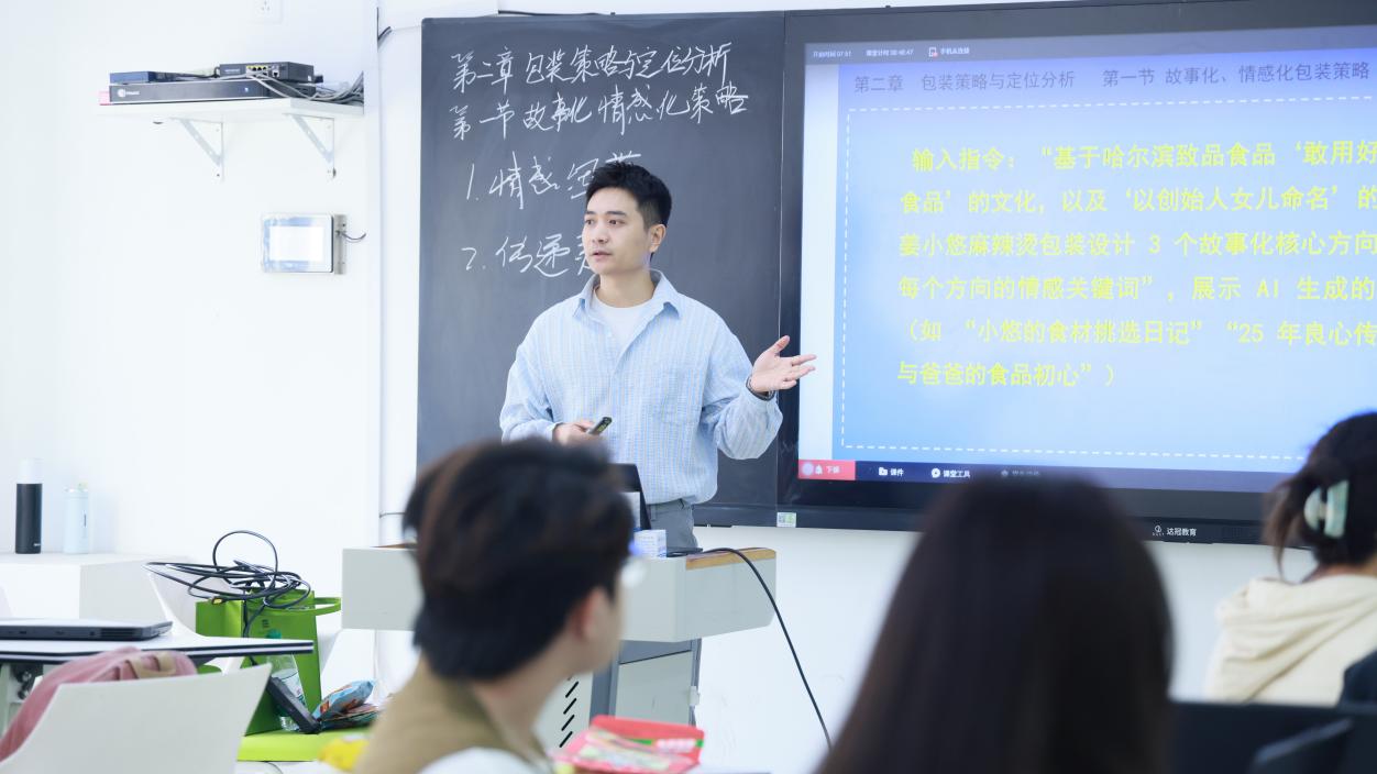 在藝術(shù)學(xué)院張學(xué)藝?yán)蠋煹陌b設(shè)計(jì)課上,學(xué)生以“麻辣燙”為主題,借助AI工具融合地域文化與現(xiàn)代設(shè)計(jì),打造兼具品牌故事與情感共鳴的包裝方案。北大師生共同參與,提出通過祝福語、暖心卡片和冰雪IP形象,讓包裝成為“情感載體”。周曉銘老師的短視頻拍攝與制作課則引導(dǎo)學(xué)生探索個(gè)人IP創(chuàng)作,圍繞“AI輔助與獨(dú)立思考”的平衡展開討論,北大師生以演化心理學(xué)和運(yùn)動(dòng)場(chǎng)景訪談為切入點(diǎn),與哈劍橋師生在內(nèi)容創(chuàng)作中碰撞創(chuàng)意,展現(xiàn)出跨學(xué)科融合的創(chuàng)新能力。