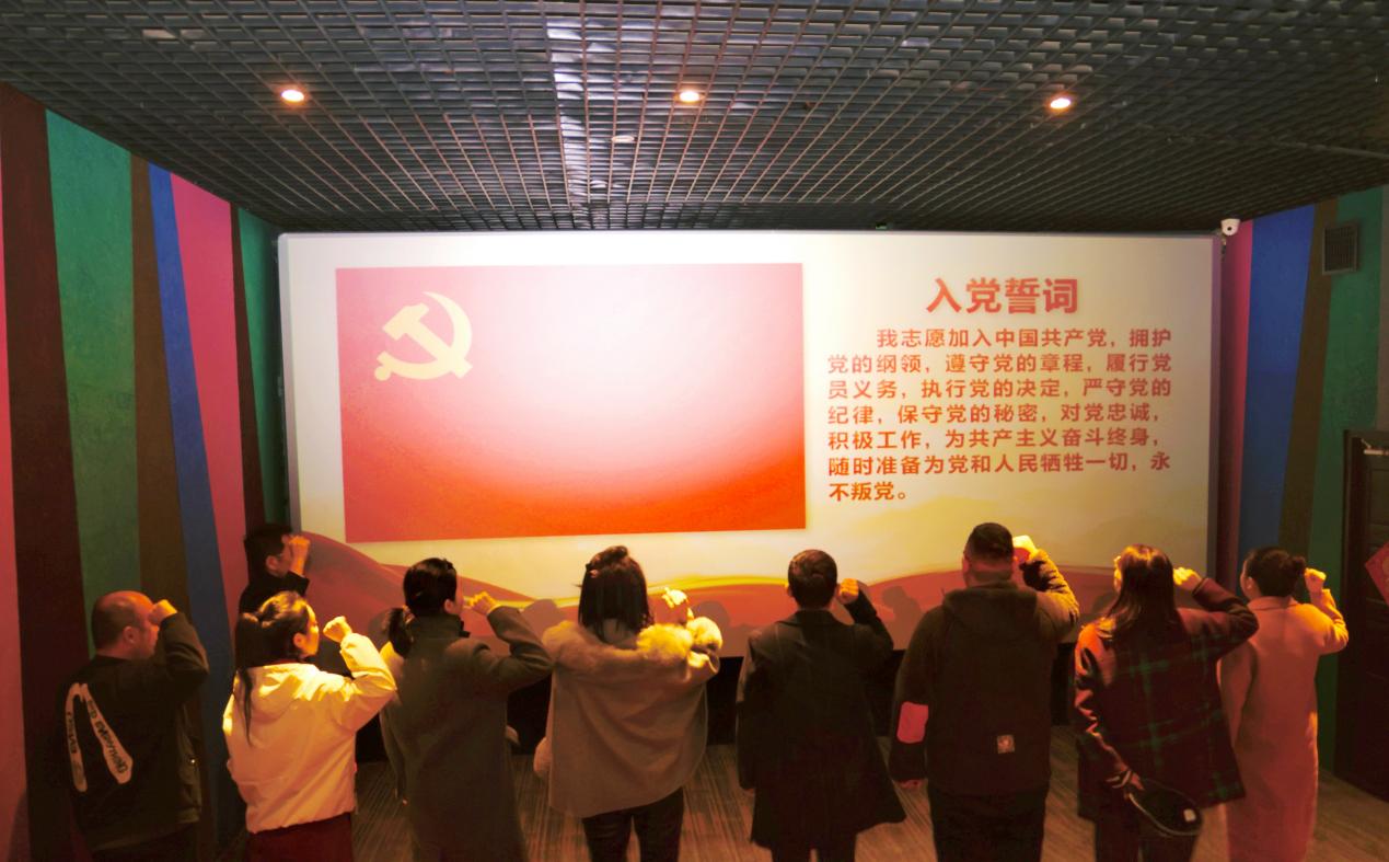 觀影后,黨員們?cè)邗r紅的黨旗下莊嚴(yán)肅立,舉起右拳,重溫入黨誓詞。一句句鏗鏘誓言,喚醒初心使命,傳遞著黨員們對(duì)黨的無限忠誠和為人民服務(wù)的堅(jiān)定信念。