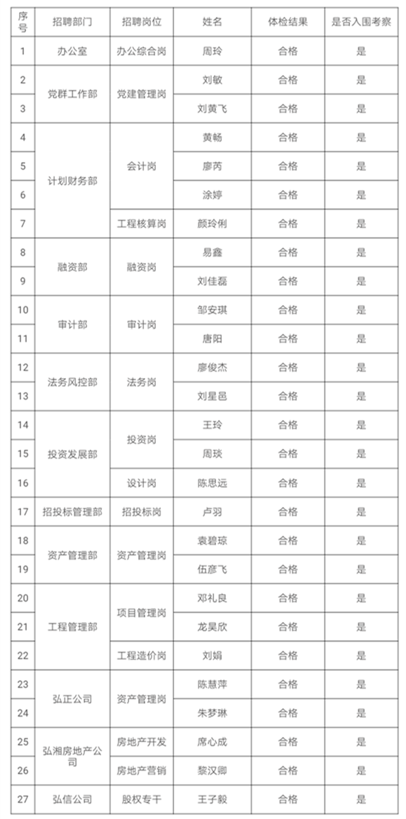 附件:衡陽弘湘國(guó)有投資(控股)集團(tuán)有限公司2020年公開招聘員工體檢結(jié)果及入圍考察人員公示
