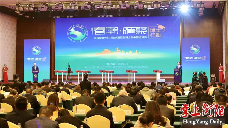 ▲“春潮·雁聚”博士行動——市校企合作引才洽談暨百名博士集中簽約活動舉行