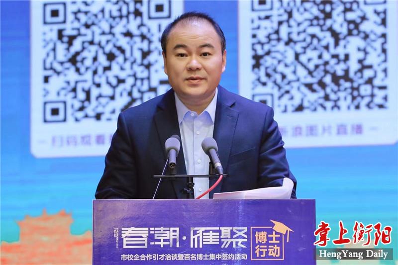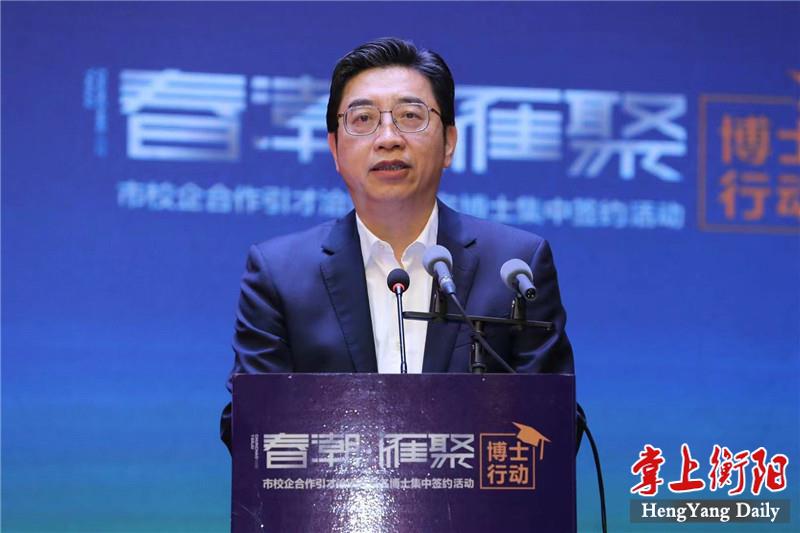 4月29日上午,“春潮·雁聚”博士行動——市校企合作引才洽談暨百名博士集中簽約活動在衡舉行,市委書記鄧群策在簽約儀式上向五湖四海的人才發(fā)出誠摯邀請,期望各位才俊用所學(xué)所得的智慧之光,照亮深入推進“一體兩翼”建設(shè)的騰飛之城,在衡陽這片高質(zhì)量發(fā)展的熱土上成就輝煌事業(yè)、書寫精彩人生。市委副書記、市長朱健主持簽約儀式。