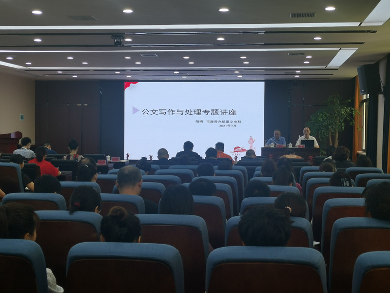 此次培訓(xùn)特邀市政府辦機(jī)要文電科科長陽明進(jìn)行專題授課。他以工作需求為導(dǎo)向,用通俗易懂的語言圍繞公文釋義、公文種類、公文格式、行文規(guī)則、公文擬制、公文辦理等六個方面進(jìn)行了系統(tǒng)、詳細(xì)地講解。