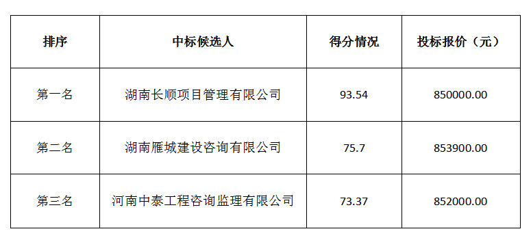 公示期2023年1月28日至2023年1月30日,公示期滿對(duì)以上中標(biāo)候選人若無異議,招標(biāo)人將確定以上中標(biāo)候選人中的第一名為該項(xiàng)目最終中標(biāo)人。
