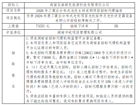 2026年工商業(yè)分布式光伏主材采購項目招標代理抽取結(jié)果公示