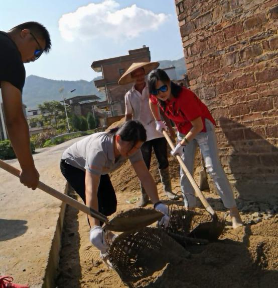 2018年8月20 日早晨8:30的關(guān)市寶新村譚海容家門(mén)口,已是一番熱鬧的勞動(dòng)場(chǎng)面,水泥攪拌機(jī)歡快地運(yùn)轉(zhuǎn)著,人們?cè)谙娜盏某?yáng)下?lián)]汗如雨,有條不紊地對(duì)門(mén)口的地面進(jìn)行找平、水泥硬化,原來(lái)這是弘信公司的全體員工對(duì)貧困戶譚海容家的一次集體扶貧活動(dòng)。他的老母親80多歲了,眼睛視線不好,家里因?yàn)樨毨?,屋里和門(mén)口的地面凹凸不平,為防止老人意外摔倒,大家集體策劃了此次扶貧活動(dòng)。